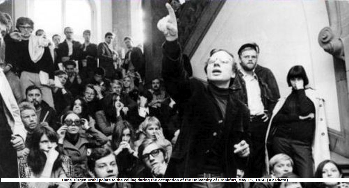 [**Atti di emergenza (Notstandsgesetze). Il 30 maggio 1968 fu approvata una serie di leggi (il Grundgesetz) che diedero al governo della Repubblica Federale Tedesca il potere di stabilire uno stato di eccezione e di abrogare alcuni diritti garantiti dalla costituzione. I critici videro somiglianze tra queste leggi e le clausole riguardanti i poteri di emergenza nella costituzione della Repubblica di Weimar, che erano state utilizzate dal NSDAP e dal suo maldestro complice Hindenburg per trasformare la Repubblica di Weimar in una dittatura]